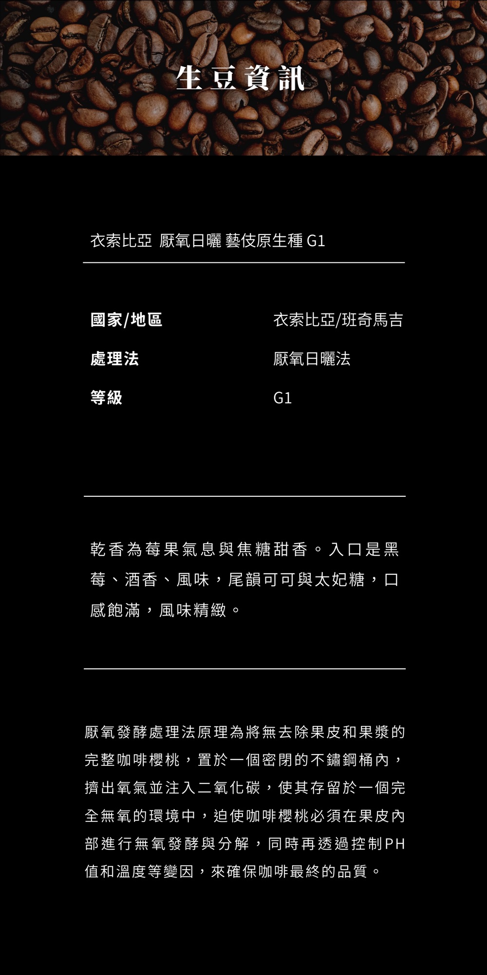 【衣索比亞 厭氧日曬 藝伎原生種 G1】