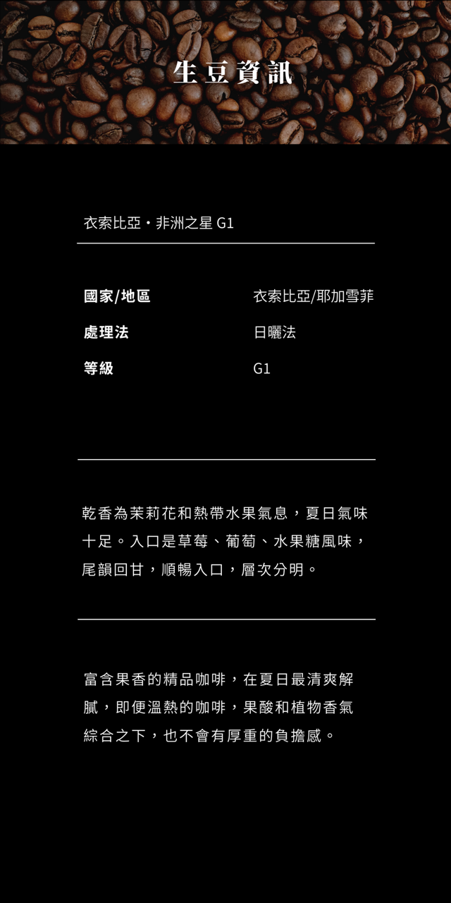 產地:衣索比亞 西達摩地區sidamo、古吉GUJI